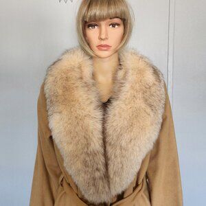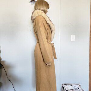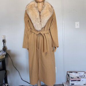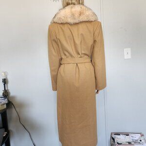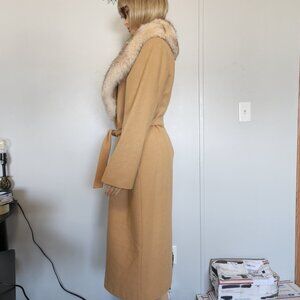 Coats by Cattiva International brown wool coat, shawl fox fur collar, belt closure, 2 pockets, size tag states size 10. This coat is in BEAUTIFUL EXCELLENT CONDITION! Measuirements are arm pit to pit 22", shoulders 18", sleeves 23" and length 47".