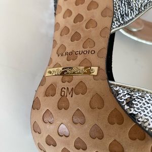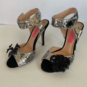 Preowned, Betsey Johnson Vero Cuoio Glitzy Sequin Floral Sandals Heels -Size 6