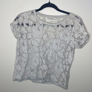 Grey Y2K see-though flower lace patterned short sleeved top!