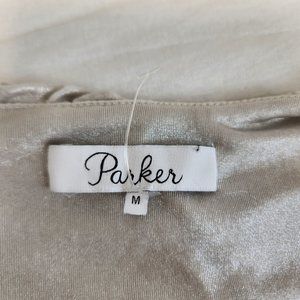 PARKER Silver Metallic Flattering Stretchy Cocktails Party Mini Dress Size Medium P5K676IS RN# 145761.
