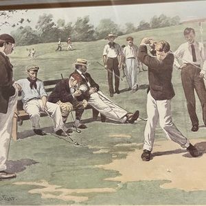 A. B. Frost was a celebrated American artist known for his golf-themed illustrations and artwork, capturing the spirit and joy of the sport with his skillful depiction of golfers, landscapes, and humorous situations on the golf course. His artwork, often featured in magazines and books, became iconic in the world of golf and continues to be highly sought after by collectors and enthusiasts. Frost's ability to convey the essence of golf through his detailed and lively illustrations has made him a beloved figure in the realm of golf art.