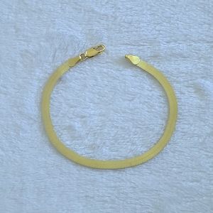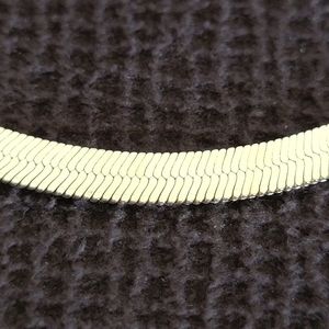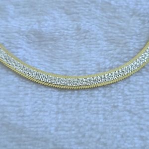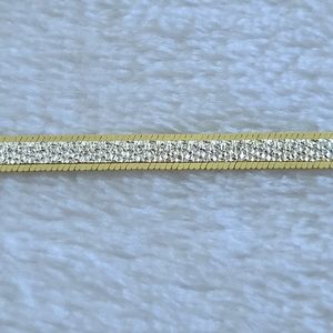 Sleek, flat, fluid bracelet with a textured silver🤍 confetti design with gold💛 edges on one side and a gold💛 herringbone design on the flip side