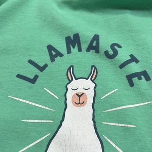 The cutest social distancing Shirt I've seen! For yoga or Llama lovers. Or just a cute and fun shirt. Excellent condition with no visible flaws stains or holes. Life Is Good Namastay Llamastay 6 Feet Apart Llama Teal T Shirt Sz M EUC