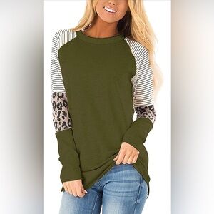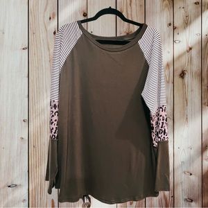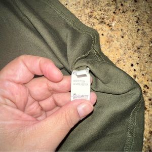 Army Green long sleeve shirt. In excellent used condition. Looks great with leggings and some boots. Great for fall weather.