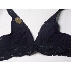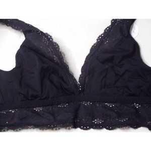 This soft wirefree bra features lovely floral embroidered lace. Wear it at home for sleep/leisure comfort, or show a sexy glimpse of lace under your casual tops and jackets when you're going out. Romantic scalloped lace pretties up this deep V-neck bralette fashioned with fully lined cups and a J-hook back for versatility.