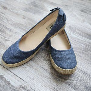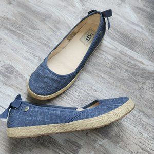 Ugg Indah Ballet Flat Denim Blue Western Girl Country Core Lace Ribbon 6.5 NEW