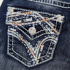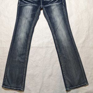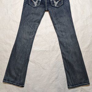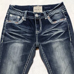 Grace in LA boot cut jeans with faux flap decorative button embroidered back pockets. Please look over all photos for any issues with jeans.