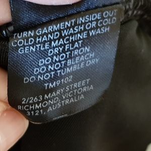 No size tag but it's Small to M. Suit 8-10 depending how tight you like it. Is very stretchy. Polyester/spandex.