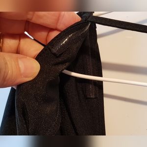 Tiger Mist black Ismay dress with ruched sides and centre-back. Long sleeves. Two ties at back. Sleeves and bodice have non-slip strips as pictured.