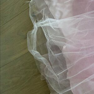 Slight fraying to the under skirt at the hem. The over skirt has a small tear. Neither of these are noticeable as the skirt is so full and puffy