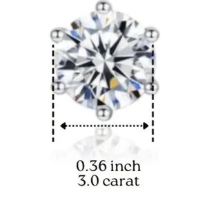 3cwt vvs1 color D .36" Round Brilliant moissonite diamond studs W certificate 925 setting. Extravagantly cut and set. Each stone is a full 1.5ct. 3cwt. AMAZING STUDS. Test positive as a diamond on the presidium. Handmade by reputable jeweler.