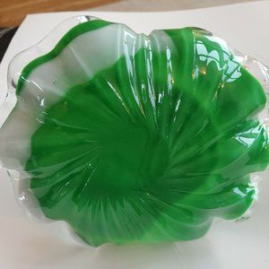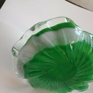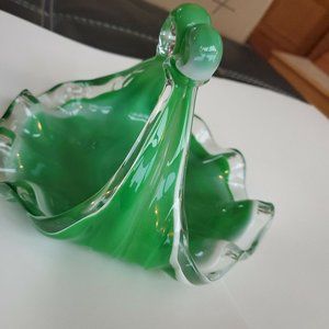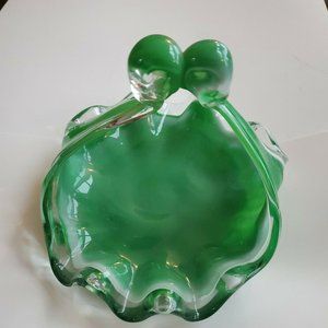 Vintage Green Depression Glass Unique Curved Swirl Candy Dish w/Handle 8x7x6
