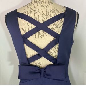 Vintage Bill Levkoff Navy Blue Satin Bridesmaid Satin Dres Beautiful
