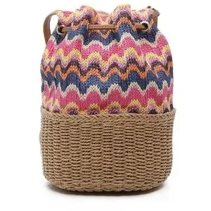 This Crown Vintage bag features a colorful Chevron print, with contrasting raffia weaved bottom half. A cute straw bag that will be great for any summer event or outing. Have this for your next summer fun time! Mix of colorful print and natural basket weave this shoulder bag features top closure drawstring and tassels.
