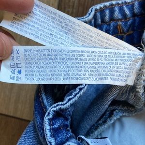 The photographs show exact item you will receive. No rips, stains, or tears, but the front closure tab feels loose. It does still secure the shorts closed, however. Good condition, but the hem edges are raw; this is not damage.