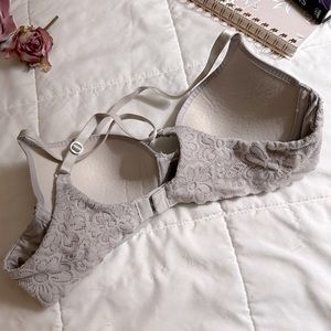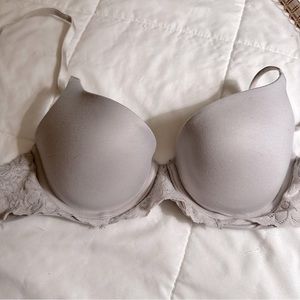 Color is “soft satin”, kind of like a pebblestone grey! Worn a handful of times (get it?). Push up adds a little extra something. In my opinion these Aerie bras are the perfect t-shirt bras. Offers welcome. 🩶
