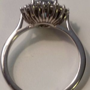 Surrounded by 14 round white diamonds that are .42 ct total weight.