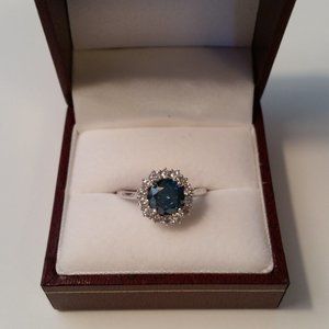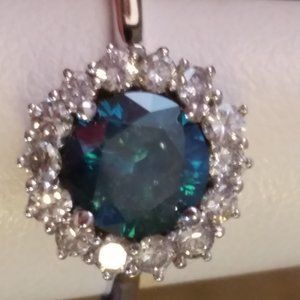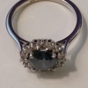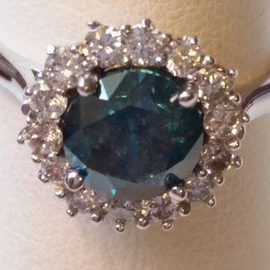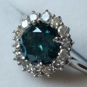1.70 Ct Enhanced Blue Diamond Ring Halo Size 7 14K White Gold