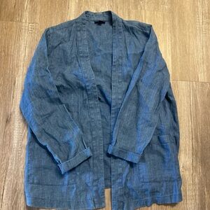 This top is sooo soft and comfortable to wear! It has a pocket in the front with a button. It has little slits on the side and is made of 100% polyester. It’s in great condition.