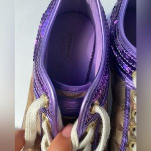Coach sneakers with purple sequin trim