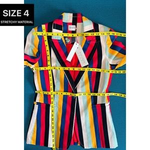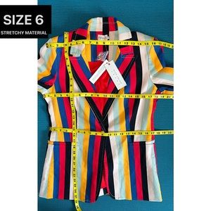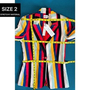 Alice + Olivia Breann Denim Boheme Striped Red Blue Multi Fitted Blazer Jacket