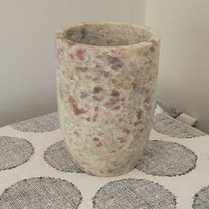 Beautiful marble vase with pinks, creams, browns and blacks. Heavy.