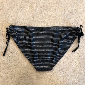 NEVER WORN BLACK WITH WHITE STRIPES TIE SIDES BIKINI BOTTOMS SIZE LARGE