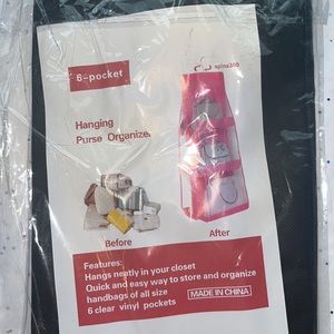 HANGING PURSE STORAGE ORGANIZER BLACK or PURPLE HOLDS 6