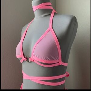 Top has added silver underboob chains (as shown in the pic of the black top) and silver O ring in the middle - beautiful hot pink strapping & baby pink high quality 4 way stretch mesh! Layers over any pasties & straps can be tied multiple ways- adjustable and has flattering underboob cut outs as well (hence the name peekaboo) open to offers <33 will upload more pics soon - want to give a good home, also selling matching chain mini if interested in bundling!💖