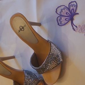 Joey Silver Sparkle Heels Size 6 Mules Stelettos Sequins