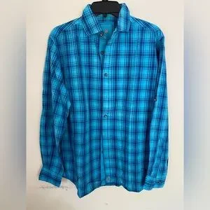 Thaddeus Men Blue Plaid Long Sleeve Button Down Shirt Size M