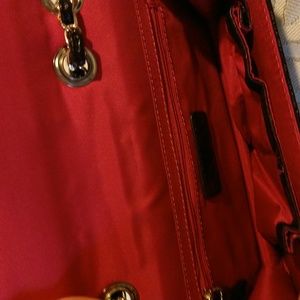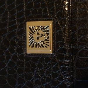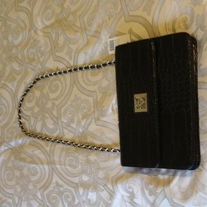 Anne Klein Black Crocodile Embossed Purse With Braided Gold Black Chain Worn 1x