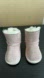 UGG baby boots, pink colour, size large (1 - 1 1/2 years). Used, but still in good condition. Have a blue scratch barely noticeable as seen in the photos or the video.