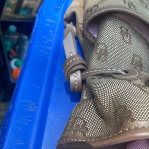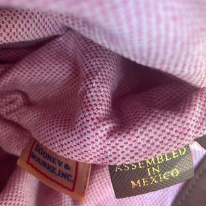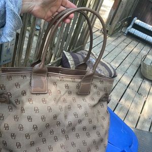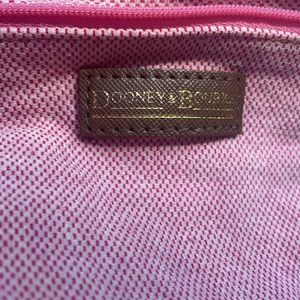 Dooney & Bourke 1975 taupe brown pink interior 16”/12” strap down 11”