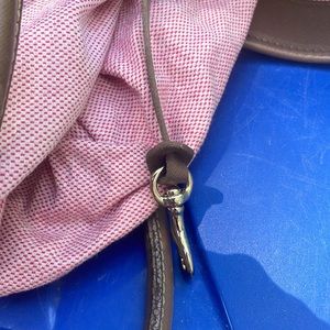 Just professional cleaned many pockets, great for teacher or on the go person carrying a lot of stuff shoulder bag some minor marks in interior and exterior lots of life left 7 pockets key clip bought as a gift was too big for the person. The interior cloth material has a smell that is only from cloth