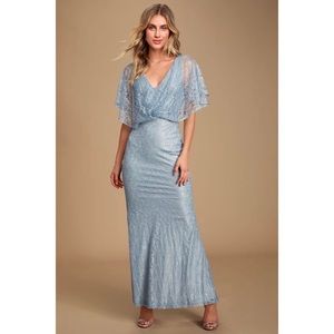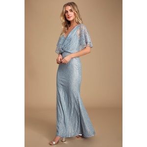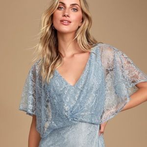 🌸Lulus Exclusive! Let your dreams come true in this beauty! Gorgeous floral lace forms a sheer overlay (atop a V-neck, and princess-seamed bodice) that sweeps into short flutter sleeves. A high, fitted waist rests atop a stunning mermaid maxi skirt with an alluring slit at back.