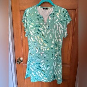 100% Cotton with a Linen Feel Tunic Top from Speed Control New York. So cute with leggings. Features pin tuck pleats on front and back of tunic, front button closure, 3/4 length sleeves with tabs to roll sleeves up, tie in back for a more fitted look and rounded hem.