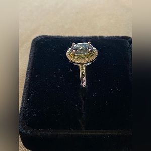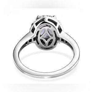Peacock Tanzanite with Diamond Double Halo Platinum over Sterling Silver Size 8