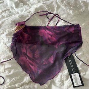 Size xs, cowl neck, ties at back and back of neck. Never worn. My boobs are too big for it which guts me cuz it’s a super cute top