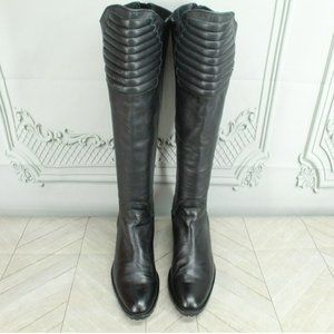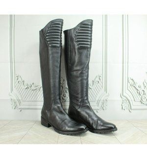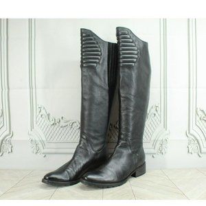 Kenneth Cole Think Ur Tough Black Leather Back Zip Tall Boots Size 6 M