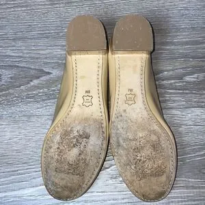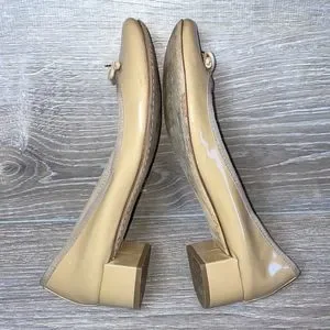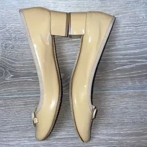 Tory Burch Chelsea Nude Tan Patent Leather Women’s Size 8M Bow Charm Heeled Pump