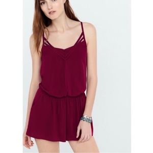 Express Maroon Strappy Romper with Pockets | Sz S