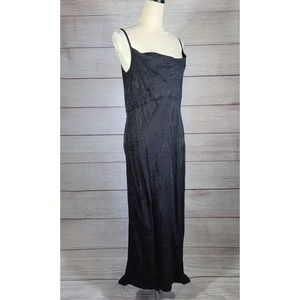 BY Anthropologie Jacquard Bias Cut Slip Dress Black Size 14