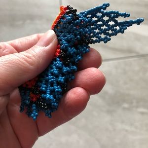These beautiful necklaces are handmade by natives of Colombia. They use all their imagination to make these beautiful designs.