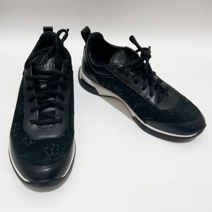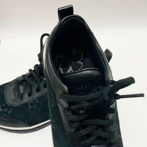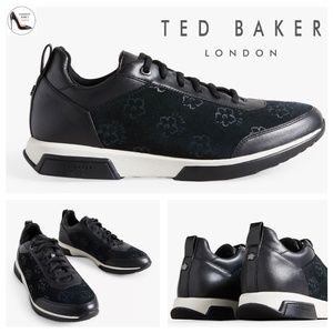 Ted Baker London Aylaa Black Leather Floral Trainers Magnolia-Print Suede Women’s Fashion Sneakers