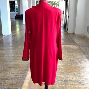 Metallic gold and black detailing on the curse of the sleeves and the neckline