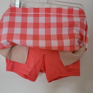 Very cute skort by Polo Ralph Lauren. Coral plaid print, pockets, ready for tee time! Women's size 2 but will fit a size 4 also.