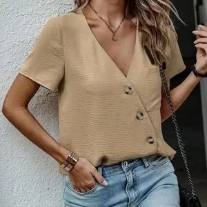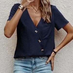 Baby Blue Short sleeve V neck Button Top