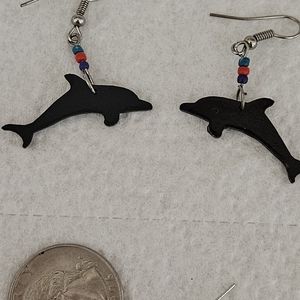 2 Pairs of Earrings Dolphins and Faux Leather Beach Strip Drops
