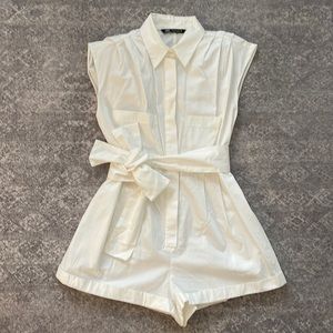 ZARA COTTON PIQUE WHITE JUMPSUIT ROMPER SHORTS